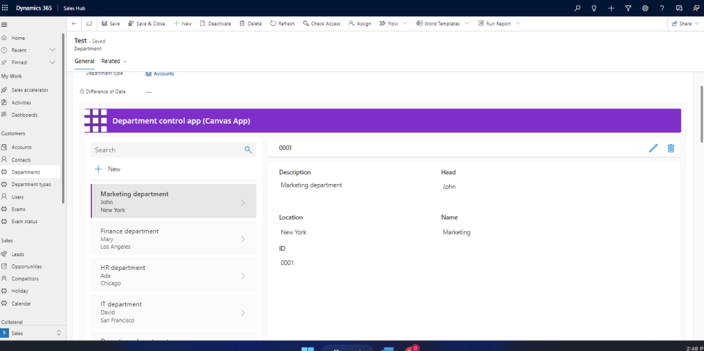 You can now see your Canvas app embedded in your Model Driven App. You can interact with your Canvas app as you would normally do, and you can also pass data between your Canvas app and your Model Driven App using parameters.
