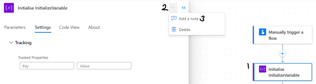 - How to add a note: You can also add a note in your “Actions/Trigger”. Click on your action >> More commands (…) >> Add a Note