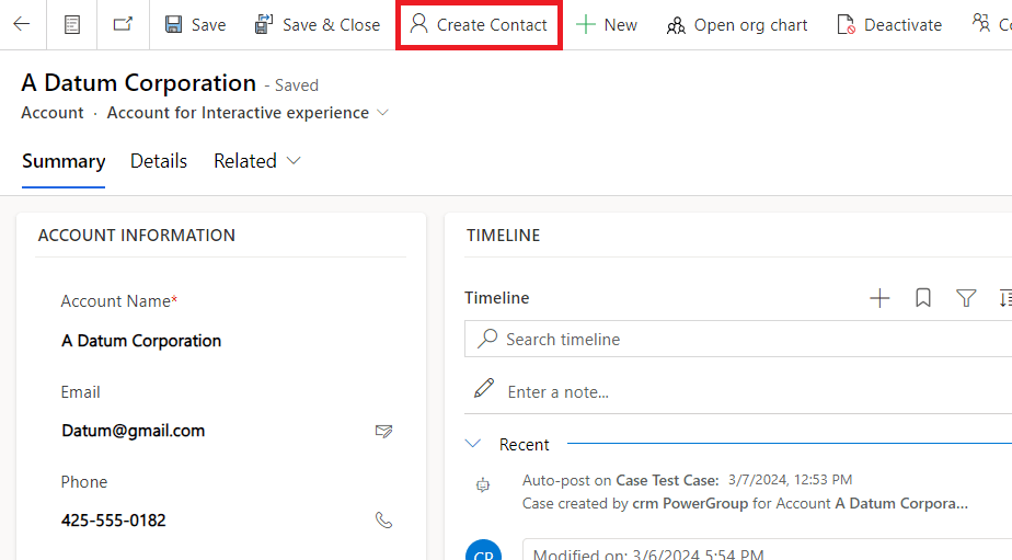 Navigate the contact form to create new contacts by the command bar “Create Contact” and pre-populate the address information.