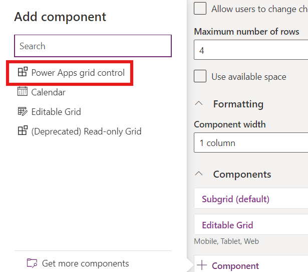 - Select Power Apps Grid Control