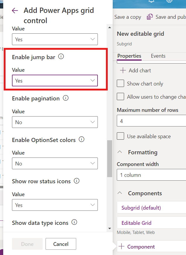 Let’s activate jump bar for the same Contact Editable Subgrid.