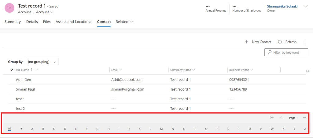 - Now, refresh the subgrid and now you will be able to see jump bar in bottom of the page as shown in below snapshot.