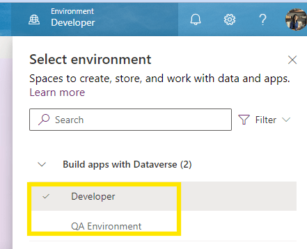 - Select “Developer” environment.