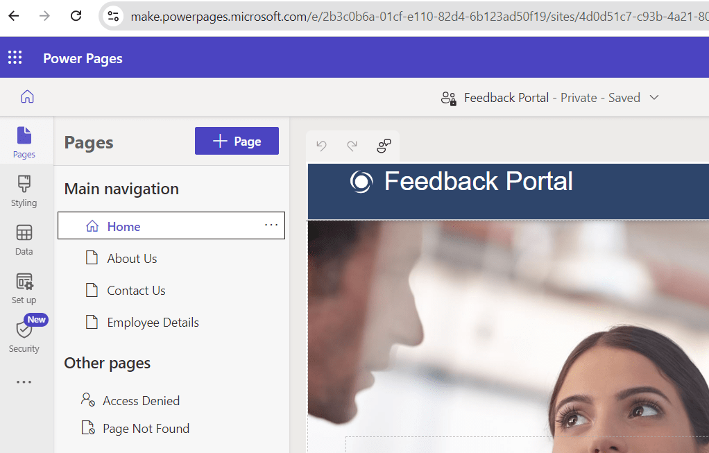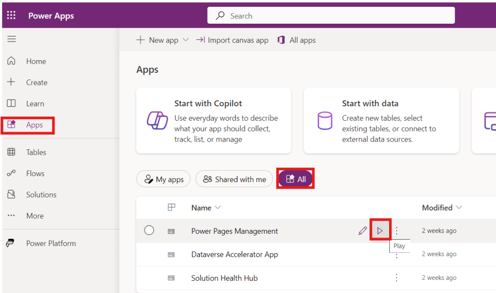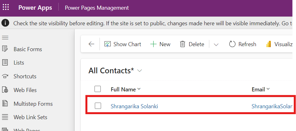 - Now when you navigate to the “Contact” from “Power Pages Management” app. (make.powerapps.com >> Apps >> All >> Power Pages Management >> Play)