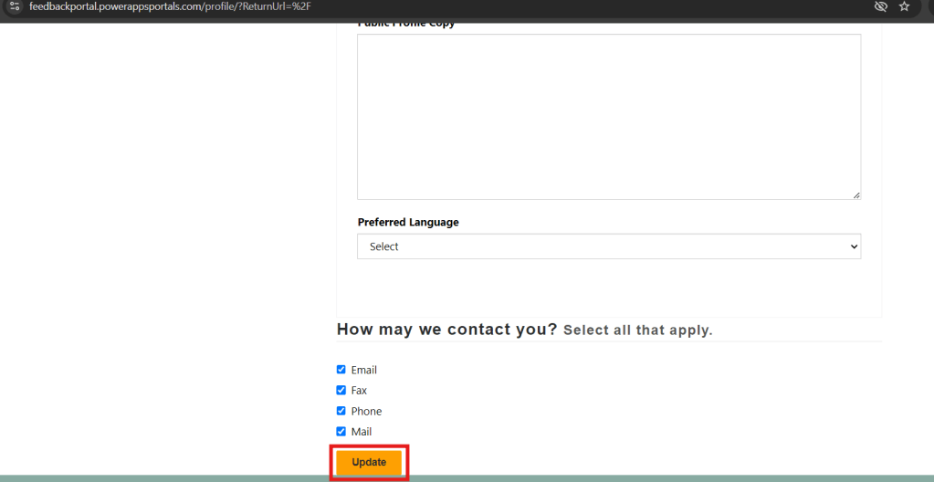 - Now, from here, you also can update your personal information if you want to, by adding the information in the respective columns and clicking on “update”.