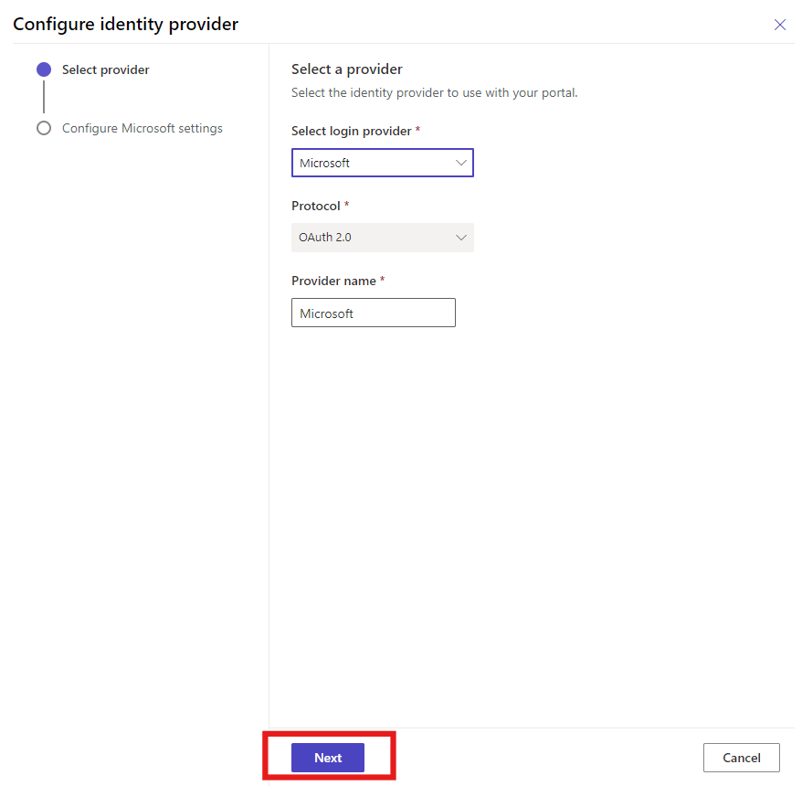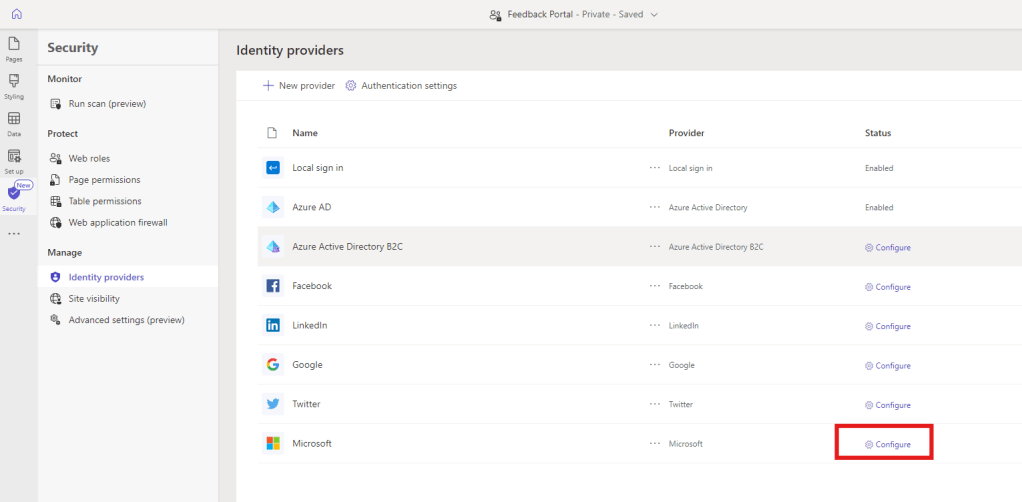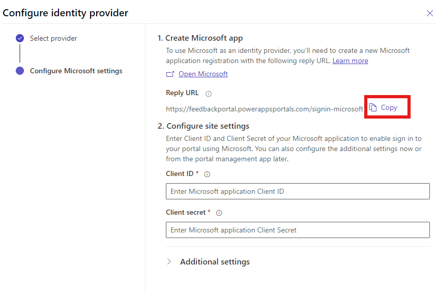 Steps to set up Microsoft’s identity provider in Power Pages: