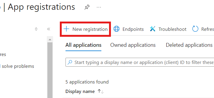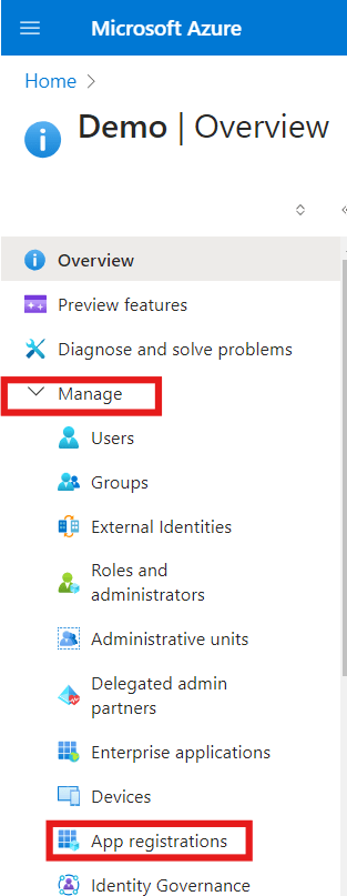 - Expand “Manage” and click on “App Registration” from the left navigation pane.