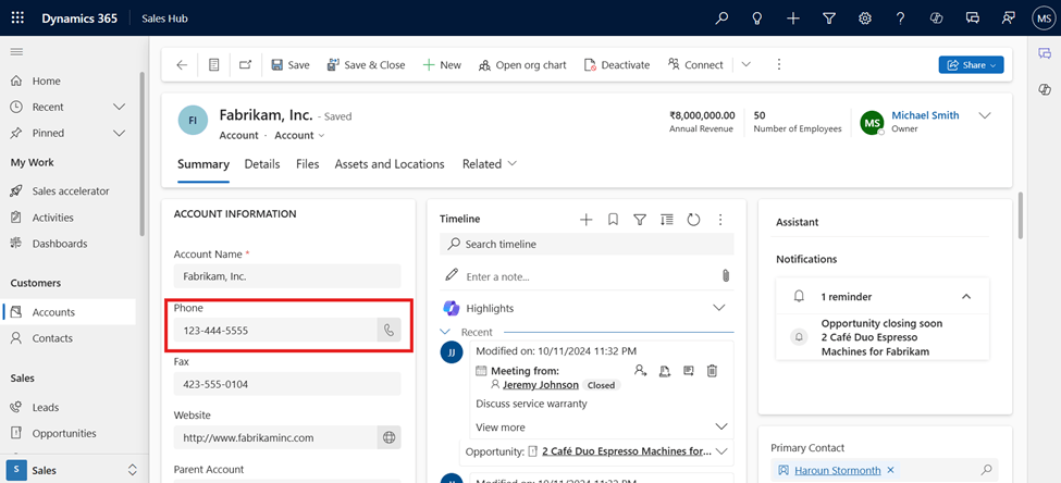 - Now to test this navigate to Account table form and update the Telephone1 field value to 123-444-5555.