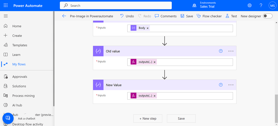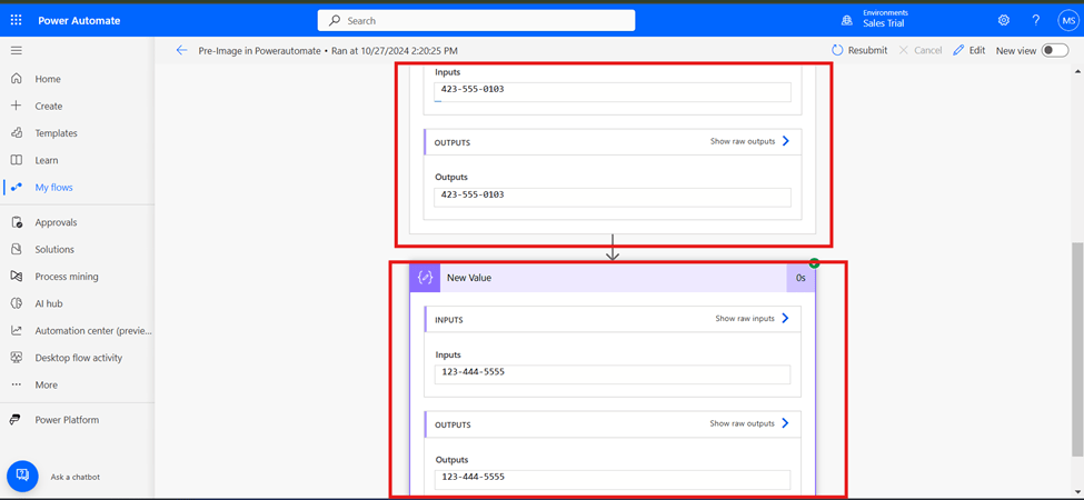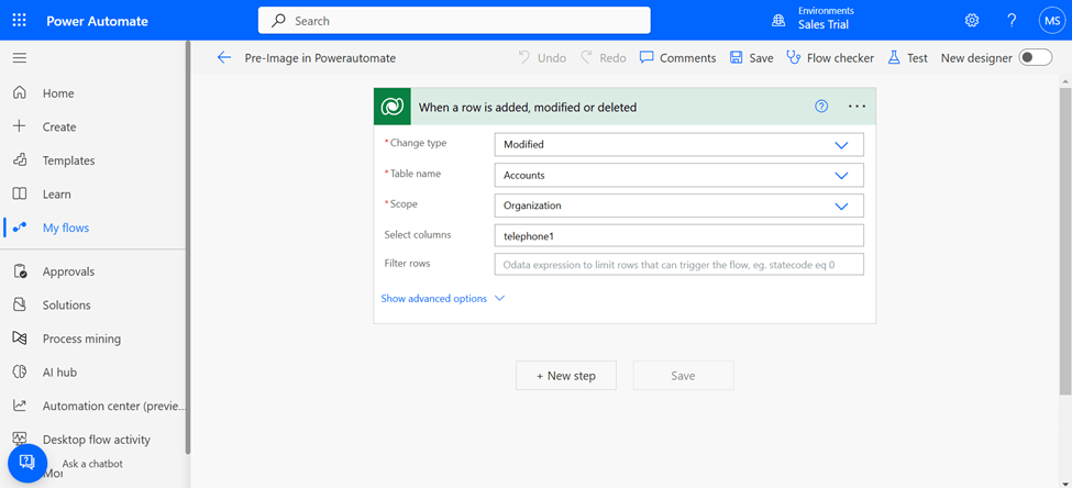 - Now, create a new Power Automate flow to check the previous and updated values of the Telephone1 column.