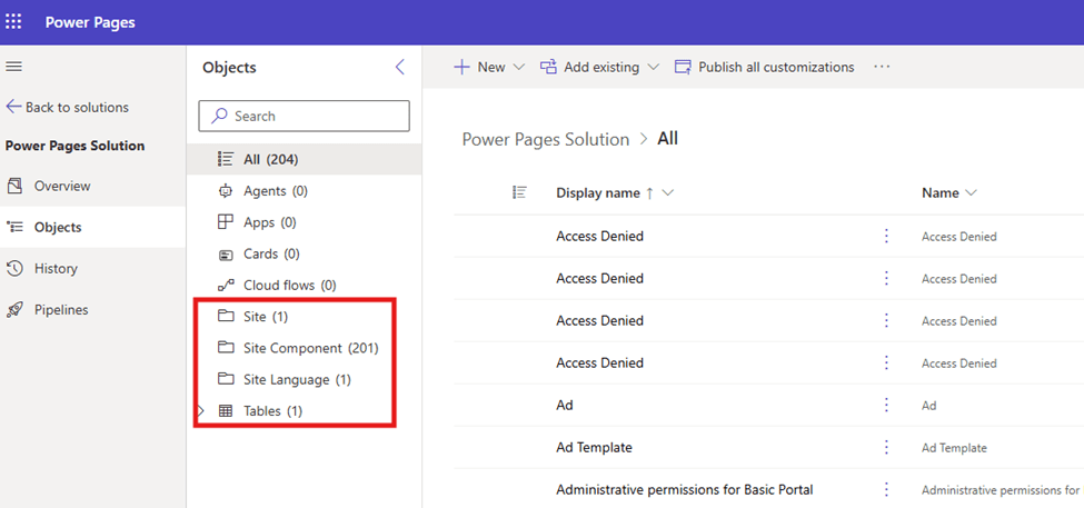 Suppose after adding Power Pages Site into the solution, you have created a new component from Power Pages Editor, then we need to add newly created component individually in the solution.