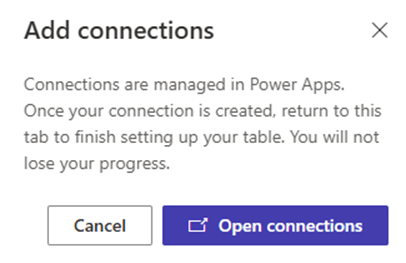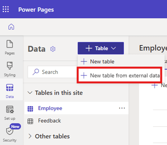 - Now, click on +Table and select “New table from external data”