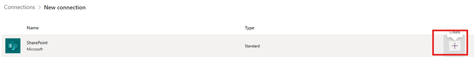 - Create a SharePoint connection