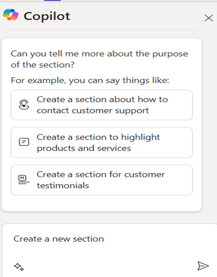 - Customizable: While Copilot provides suggestions, you still have full control over the final layout. You can tweak the section’s design, content, or placement to fit your vision.