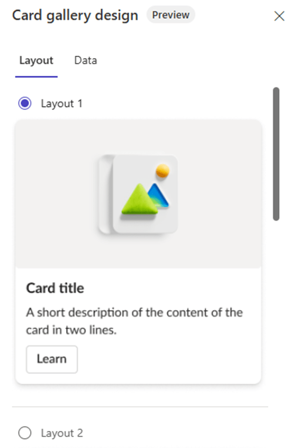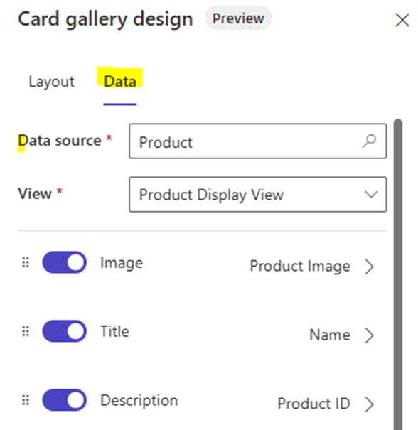 - Card galleries can display dynamic data, so you need to link it to a data source.