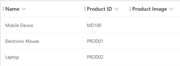 - In this example, we are using dataverse table “Products” wherein I have created a custom image column to store images of the products.