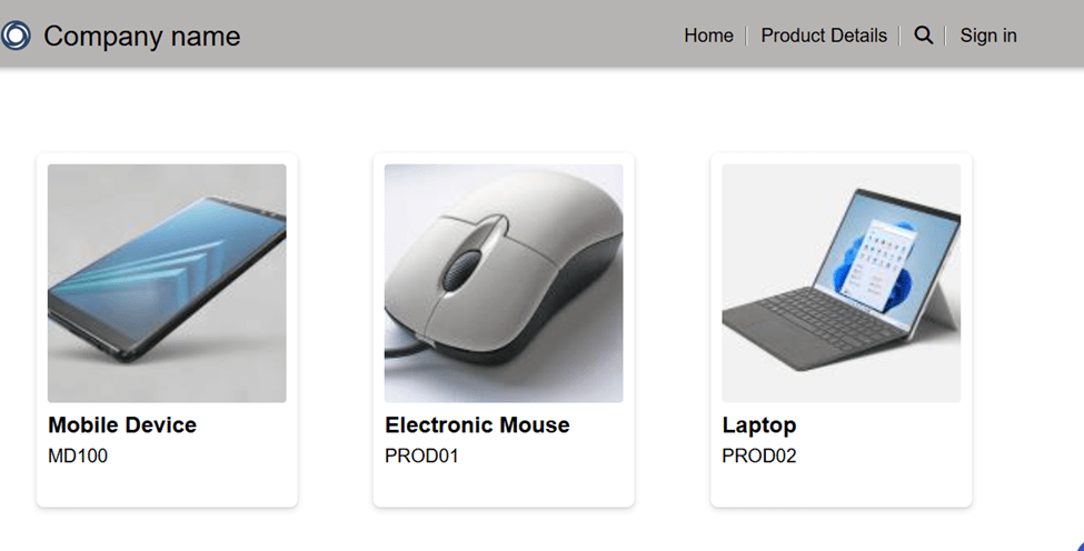 - Here, I have created a new page called “Product Details” to show the active products inside card gallery.
