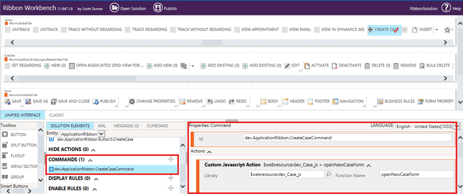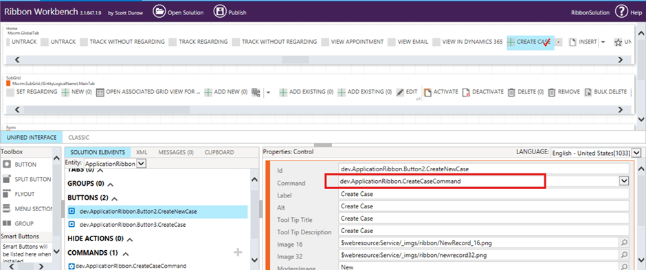 Scenario: Our goal is to add a ribbon button for “Create Case” to both the Global Command Bar.