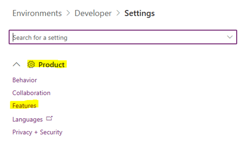 - Select Product > Features