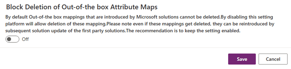 - Scroll to find the setting: “Block Deletion of Out-of-the-box Attribute Maps”
